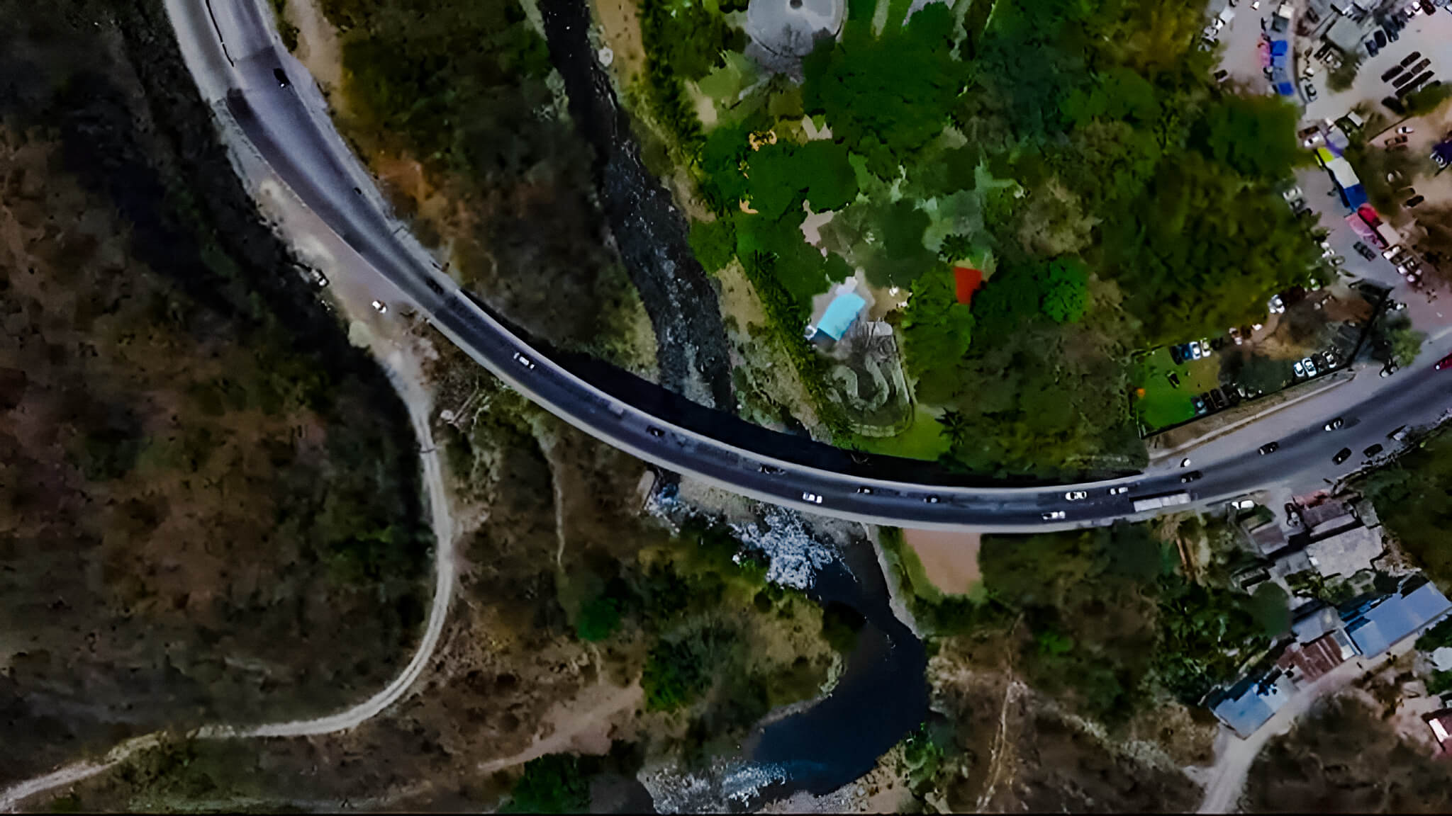 According to Grupo Muratori, this is the first extradosed bridge in Guatemala. This type of structure combines characteristics of cable-stayed bridges and girder bridges, integrating cables that reinforce a concrete structure to enhance efficiency and stability.