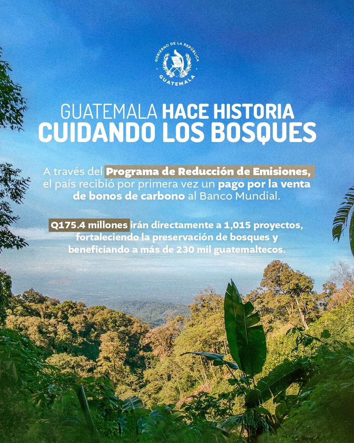 Guatemala receives its first results-based carbon payment from the World Bank after reducing 4.84 million tons of CO₂, with Q175.4 million allocated to forest conservation projects nationwide.