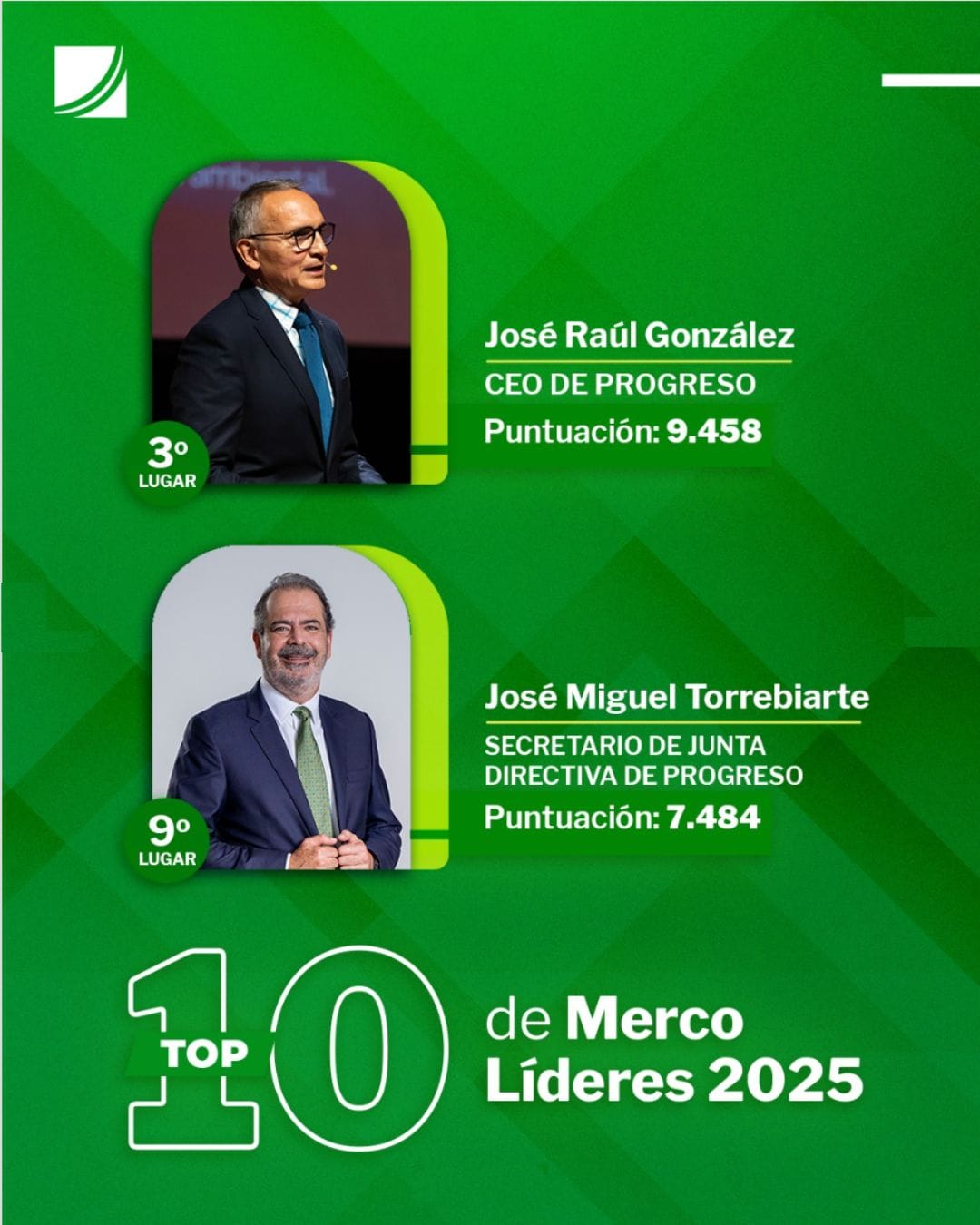 José Raúl González, CEO of Progreso, achieved third place in MERCO’s general ranking of business leaders. His position within the Top 3 highlights his strategic leadership, management capabilities, and ethical approach, all of which have been central to strengthening Progreso’s long-term expansion.